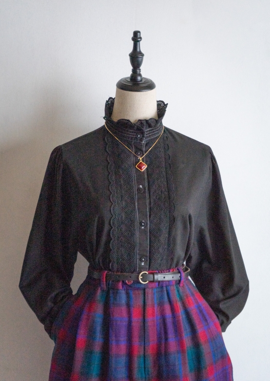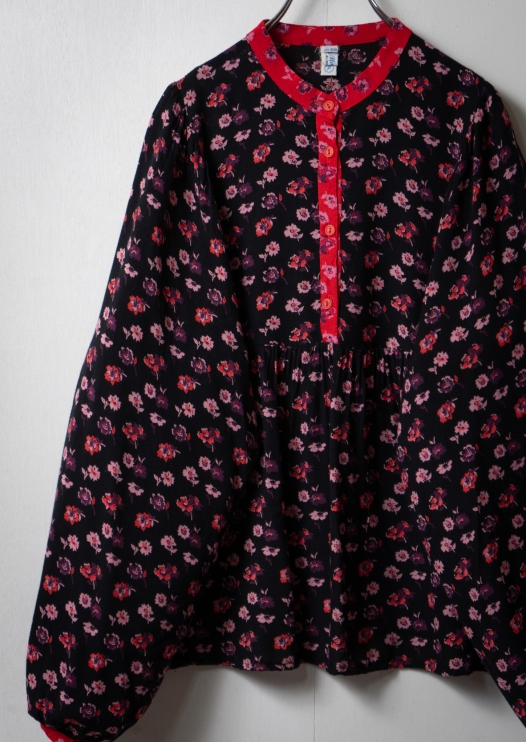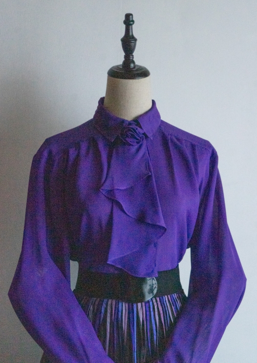 70~80's Stand Frill Collar Flower Pattern Purple Blouse