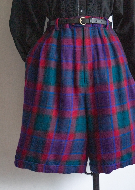 80~90’s USA Multi Dark Color Check Pattern Short Pants