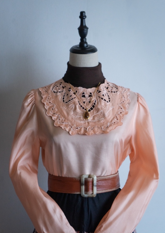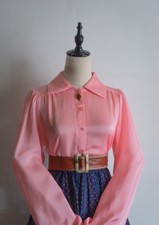 70~80's Front Pleats Design Pink Linen Tyrol Blouse