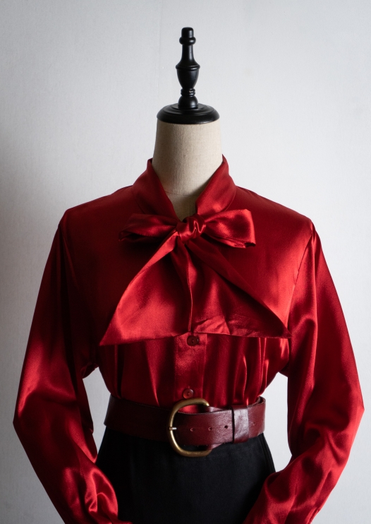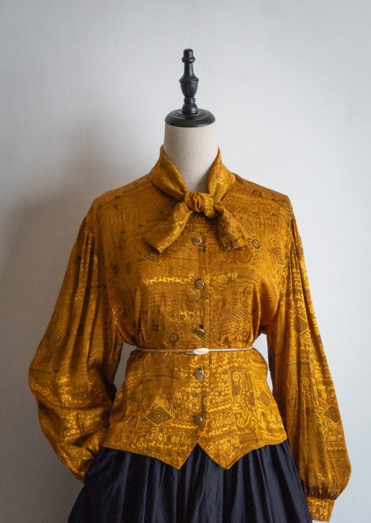 80’s W-Germany Unique Glossy Pattern Bow-tie Blouse